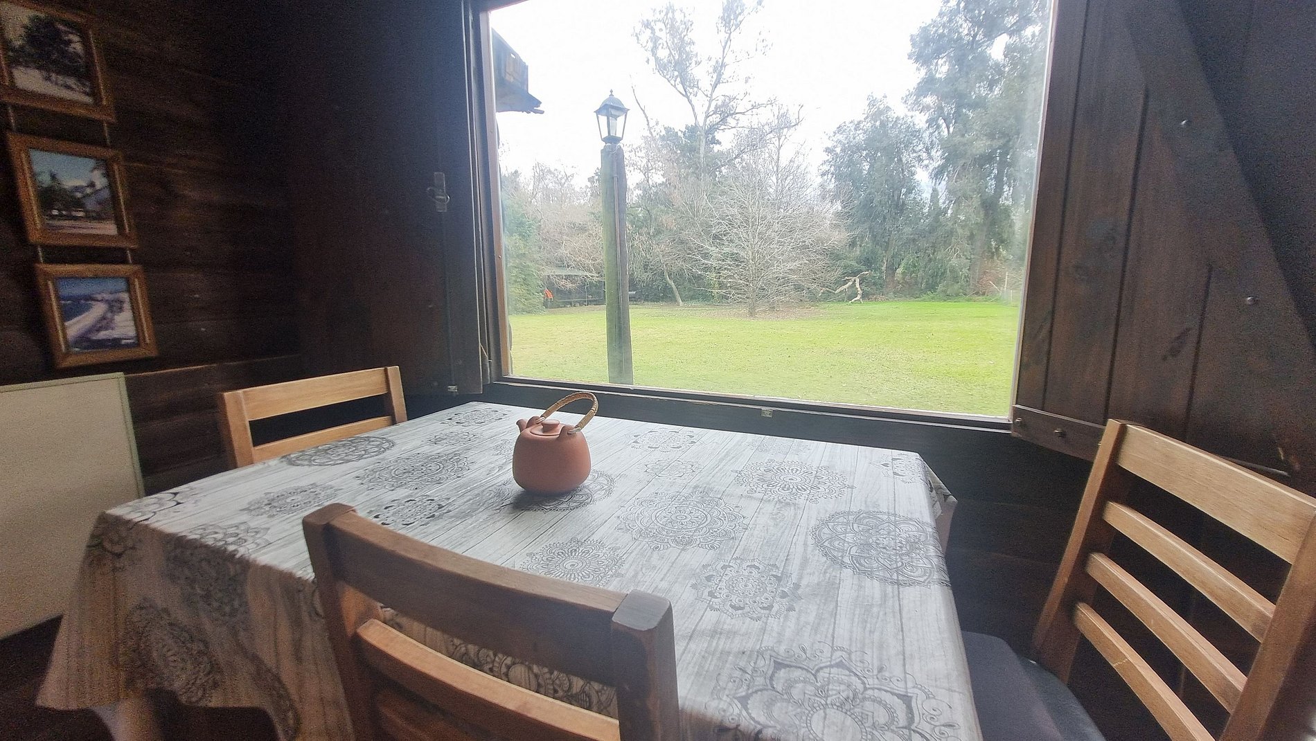 Our cabin in Pilar was designed so that every guest can enjoy a truly restful experience and connect with the essentials. The moment you arrive, you’ll feel time slow down: birdsong, the surrounding greenery, and the warmth of wood create a retreat where daily routines are left behind. Inside, you’ll find simplicity and comfort, featuring a main bedroom filled with natural light from large windows, a living and dining area with extra beds—making the space ideal for both couples and families—and a fully equipped kitchen so that preparing a homemade meal is also part of the pleasure. Outside, the covered porch invites you to take in the scenery, flower pots add color and vibrancy, and the grill alongside the fire pit become the perfect setting for endless conversations under the stars. The spacious private park, surrounded by trees, offers a place where walking barefoot, relaxing, or playing take on new meaning. With air conditioning, heating, WiFi, bed linens, and towels included, your stay blends modern comfort with the magic of simplicity. Guests often mention the sense of serenity—the feeling of “returning to what’s essential”: reading a book as sunlight pours in, enjoying breakfast outdoors, or simply savoring the peacefulness and the company of your loved ones.