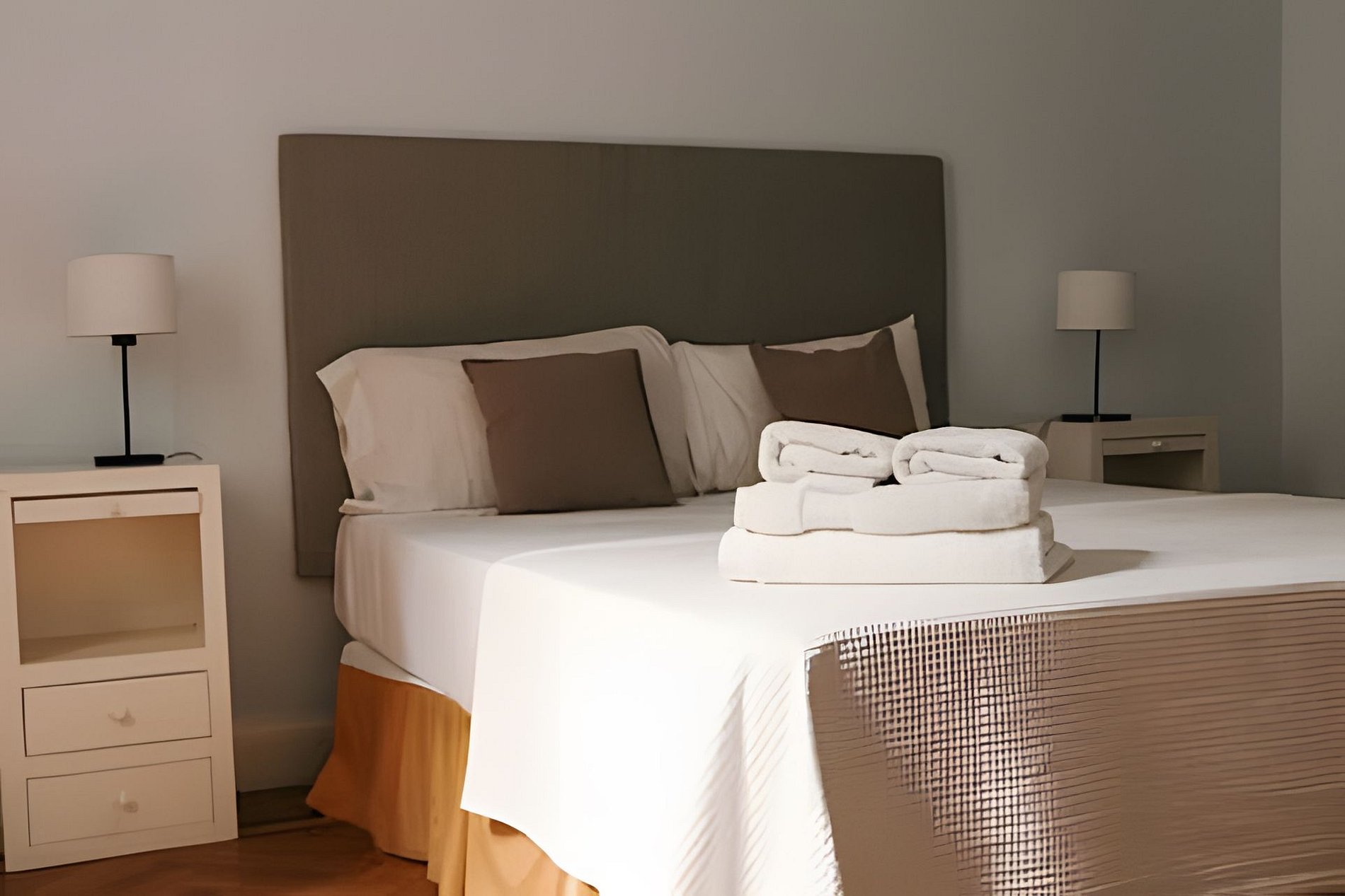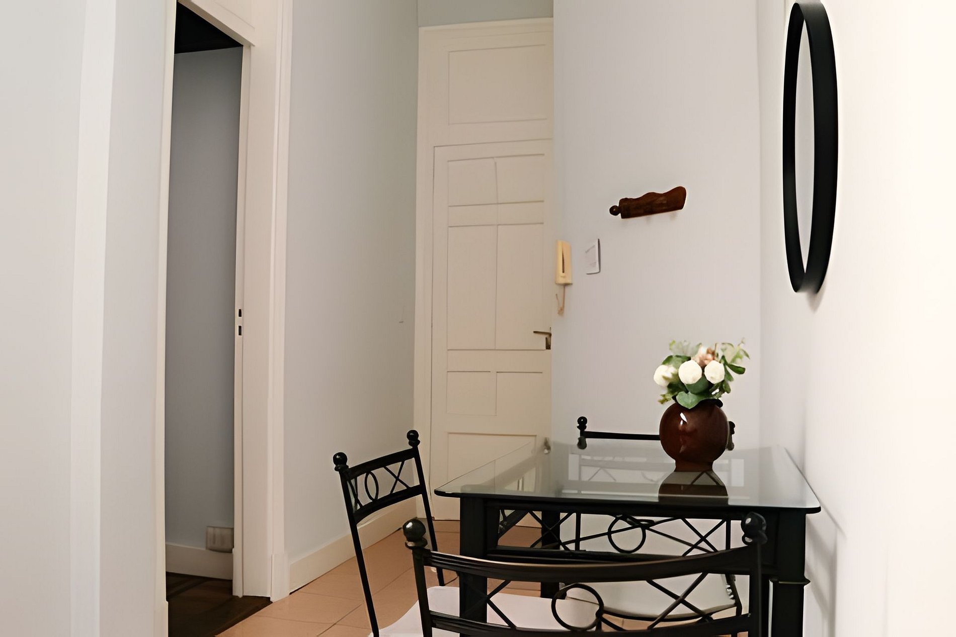 Spacious apartment with high ceilings and all comforts. Double bed that can be separated, extra mattress for a third guest. Large bathroom with dressing area and bathtub. Includes TV, air conditioning, an equipped kitchen, and a bright dining area. The building is dedicated to tourist rentals, features meticulous cleaning and laundry service. Located close to all public transportation options.