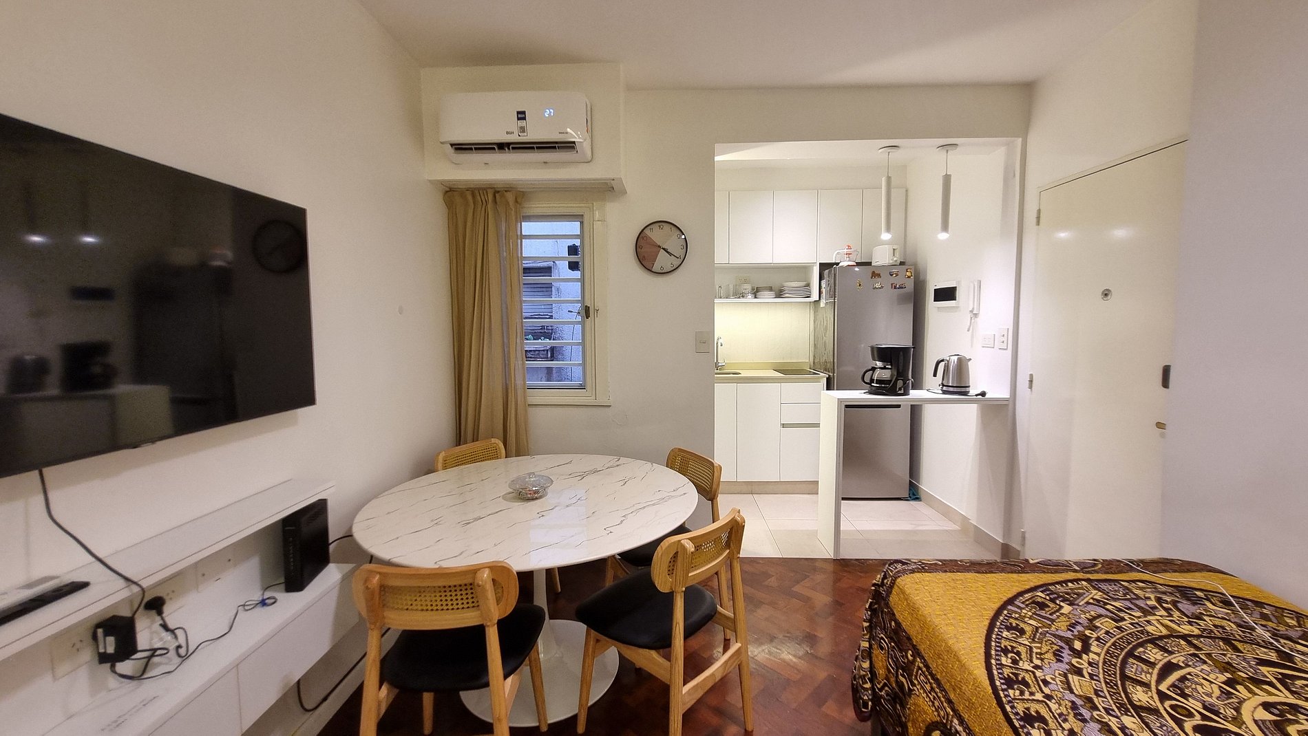 An apartment that blends modern design, warmth, and functionality. Bright, tidy, and designed to enjoy every moment: from a peaceful breakfast at the round table to a restful night in a quiet, well-climatized space. Fully equipped open kitchen, Smart TV, air conditioning, and a serene atmosphere that makes you feel at home. Perfect for those who appreciate details, comfort, and a strategic location for easy city access.