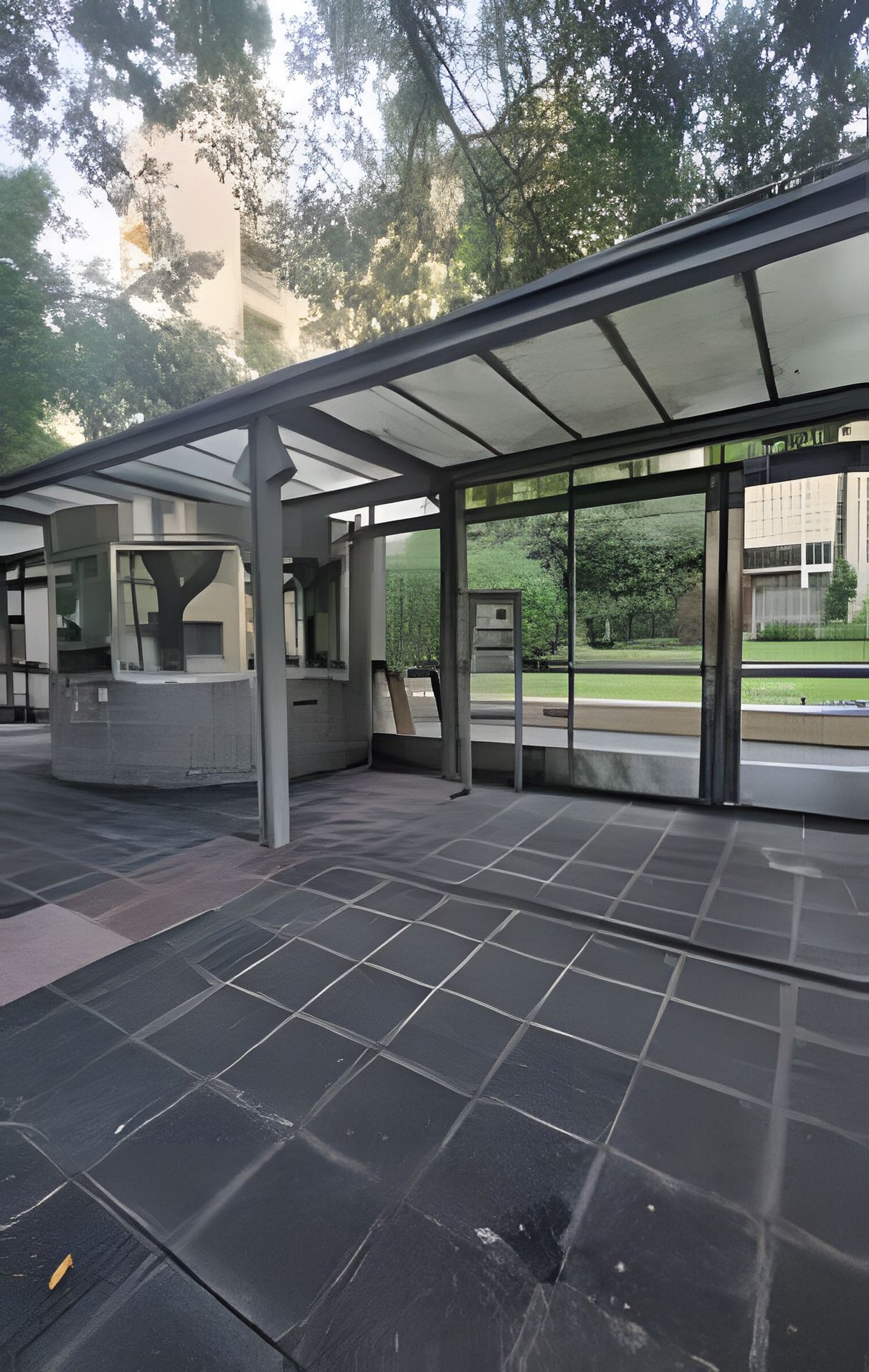 Today, the building has been transformed into a multifunctional complex that integrates residential units, offices, and retail spaces. The ground floor houses a supermarket, while the upper floors are dedicated to residential use. Much of the original structure has been preserved, including distinctive features such as beamless mezzanine slabs with capitals, which give the interiors a unique architectural character.