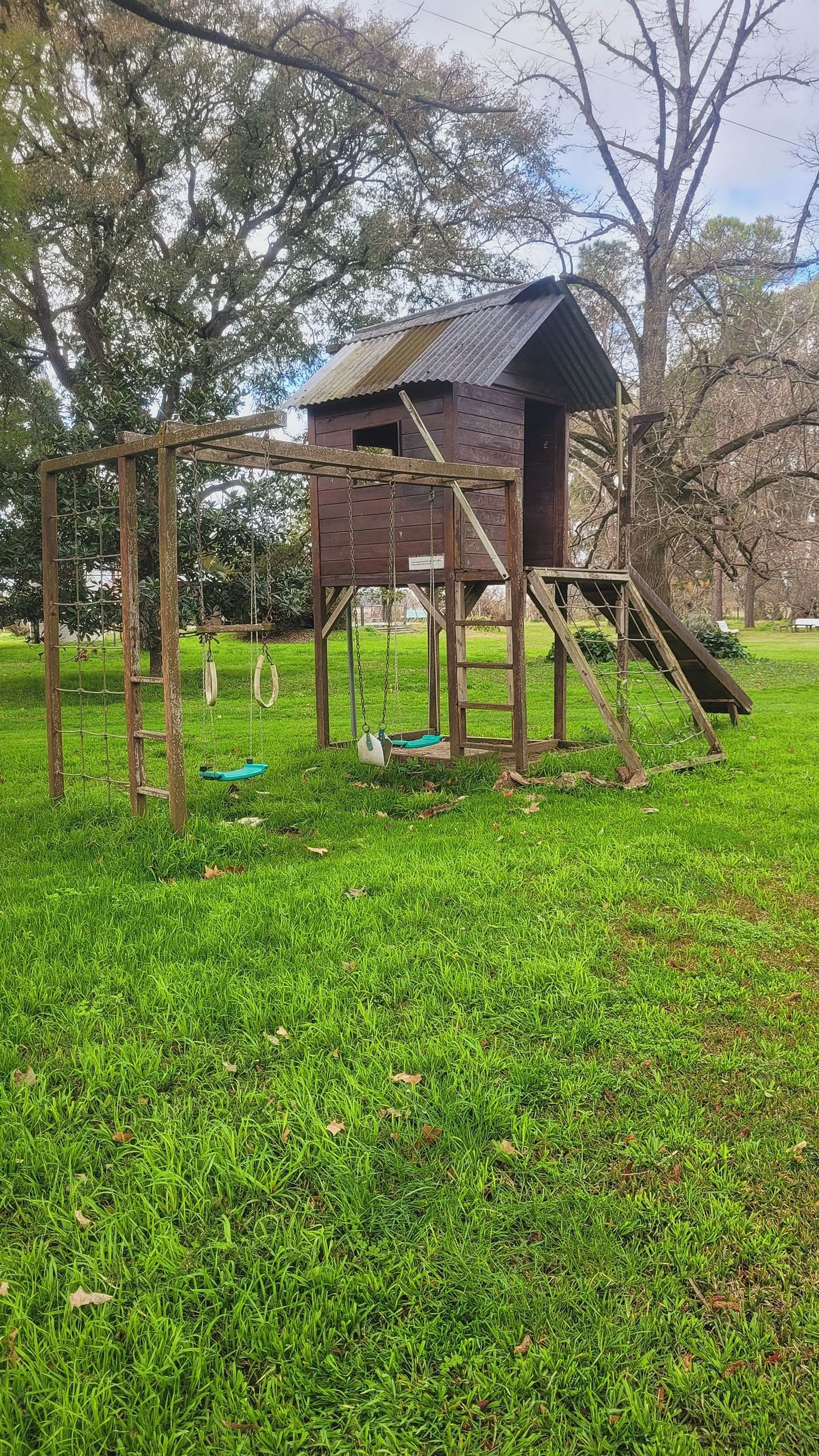Guest House – La Horqueta, in Chascomús, offers accommodation for up to 16 guests in 4 duplex units and 1 double room, each with a unique name: Roble, Ombú, Sauce, Cedro, and Tilo. It features a dining room with fireplace, equipped kitchen, and play area. Surrounded by 6 hectares with cows, chickens, and century-old trees, it offers a pool, horseback riding, fishing, and kayaking on Laguna Vitel, ideal for groups seeking nature and relaxation.