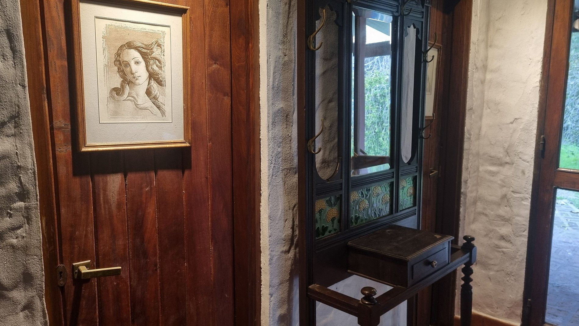 The house preserves period furniture, a wood-burning fireplace, and five en-suite rooms, all surrounded by a park of over 200 hectares populated by native wildlife: cows, chickens, and birds roam freely.