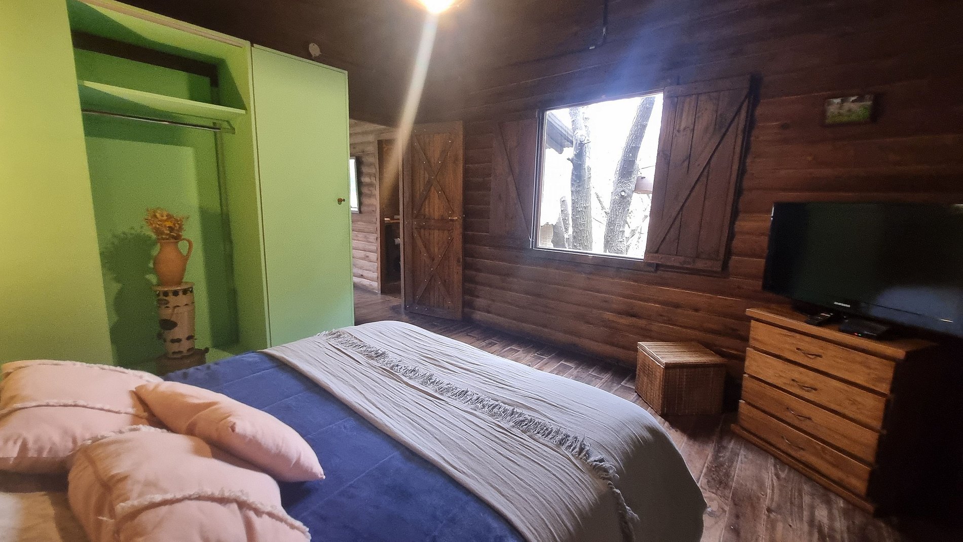 Nuestra cabaña en Pilar, fue pensada para que cada visitante pueda vivir una experiencia de descanso auténtico y conexión con lo esencial. Apenas llegues, vas a sentir que el tiempo se desacelera: el canto de los pájaros, el verde que rodea el parque y la calidez de la madera crean un refugio donde la rutina queda atrás. El interior combina simplicidad y comodidad, con un dormitorio principal iluminado por ventanales que dejan entrar la luz natural, un living-comedor con camas adicionales que hacen el espacio ideal tanto para parejas como para familias, y una cocina equipada para que preparar una comida casera también sea parte del disfrute. Afuera, la galería techada invita a contemplar el paisaje, las macetas con flores aportan un toque de vida y color, y la parrilla junto al fogón se convierten en el escenario perfecto para charlas eternas bajo las estrellas. El amplio parque privado rodeado de árboles ofrece un entorno donde caminar descalzo, descansar o jugar cobra otro sentido. Con aire acondicionado, calefacción, WiFi, ropa de cama y toallas incluidas, la estadía combina el confort moderno con la magia de lo simple. Quienes nos visitan suelen destacar la serenidad que se respira, esa sensación de “volver a lo esencial”: leer un libro mientras entra el sol por la ventana, desayunar al aire libre o simplemente valorar la calma y la compañía de quienes más querés.