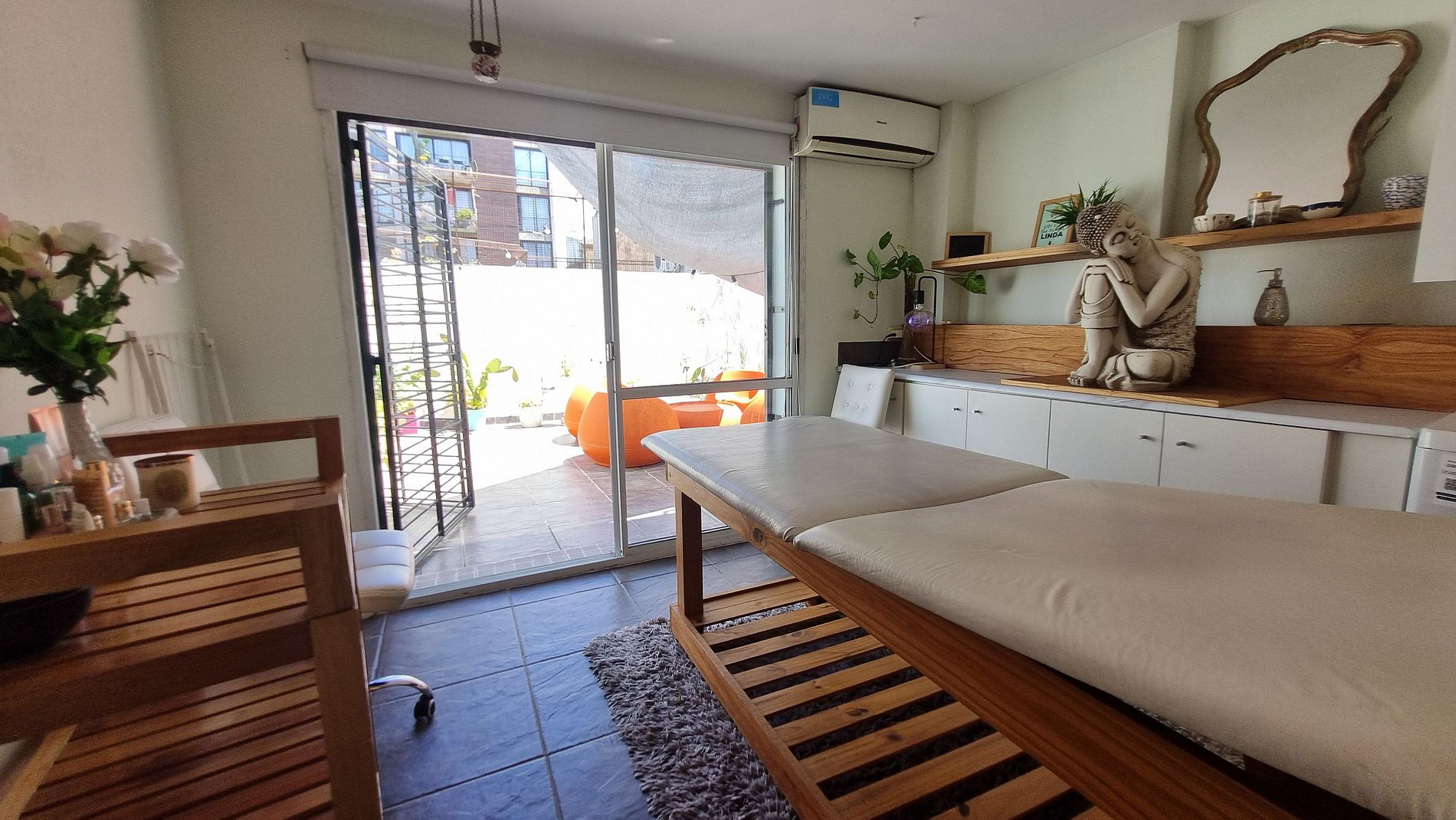 Además, el loft cuenta con una sala de masajes ambientada con detalles zen, ideal para relajarse después de un día de trabajo o paseo.