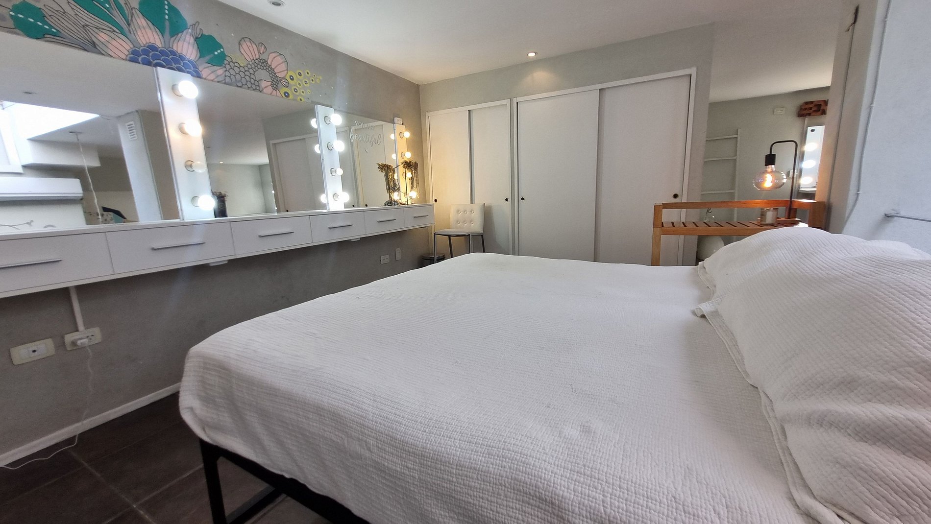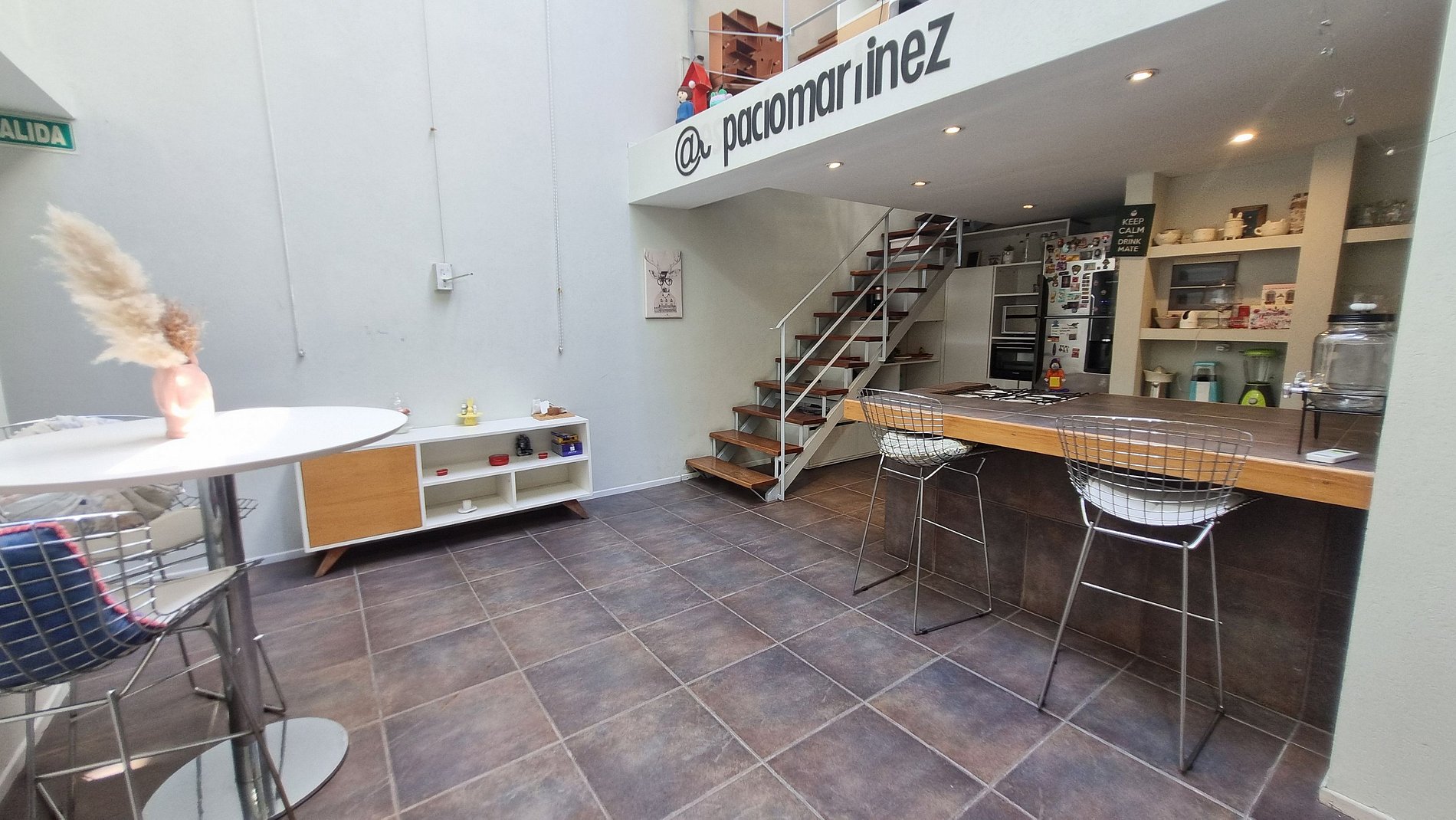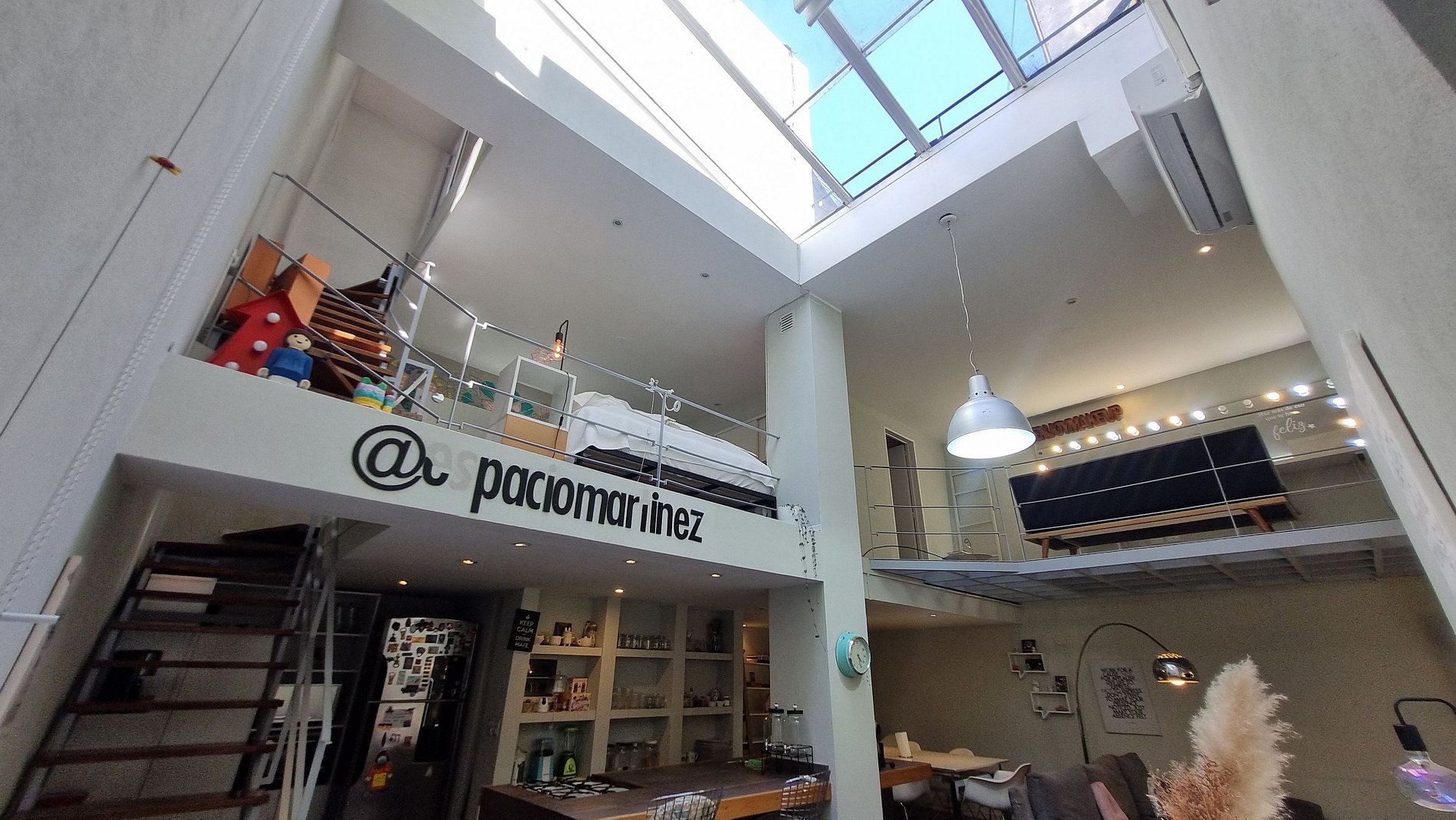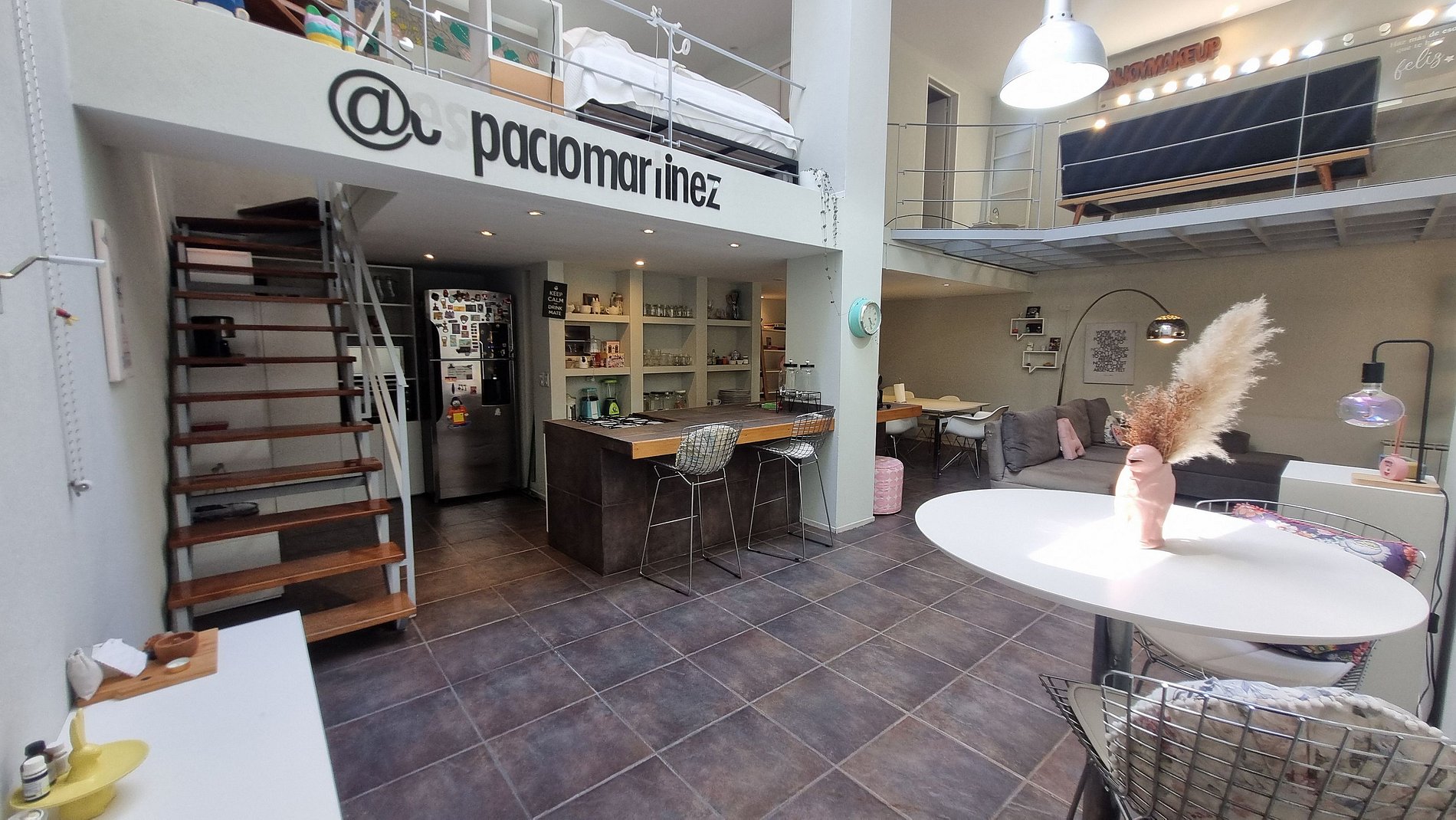 Su arquitectura abierta en dos plantas, la luz natural que entra desde los techos altos y los detalles decorativos modernos crean un ambiente cálido, inspirador y lleno de vida. Además, cuenta con espacios poco comunes —como un estudio de maquillaje profesional, una sala de masajes y una terraza súper luminosa— que hacen que la estadía sea diferente a cualquier otra en Buenos Aires.