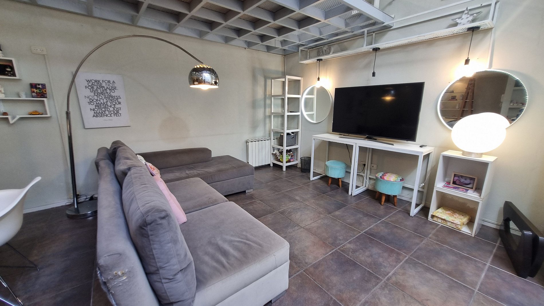 Moderno loft de dos plantas en Colegiales para hasta 4 personas. Cuenta con cama matrimonial y sofá cama, cocina integrada, living comedor y excelente luminosidad. Incluye una sala de masajes, estudio de maquillaje y una terraza con mucho sol, perfecta para relajarse o disfrutar una tarde al aire libre.