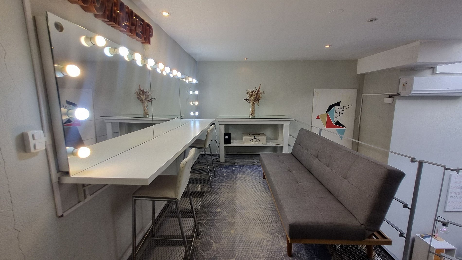 En el entrepiso, encontrarás un exclusivo estudio de maquillaje profesional, pensado para producciones, sesiones o simplemente para quienes disfrutan de un espacio de cuidado personal único.