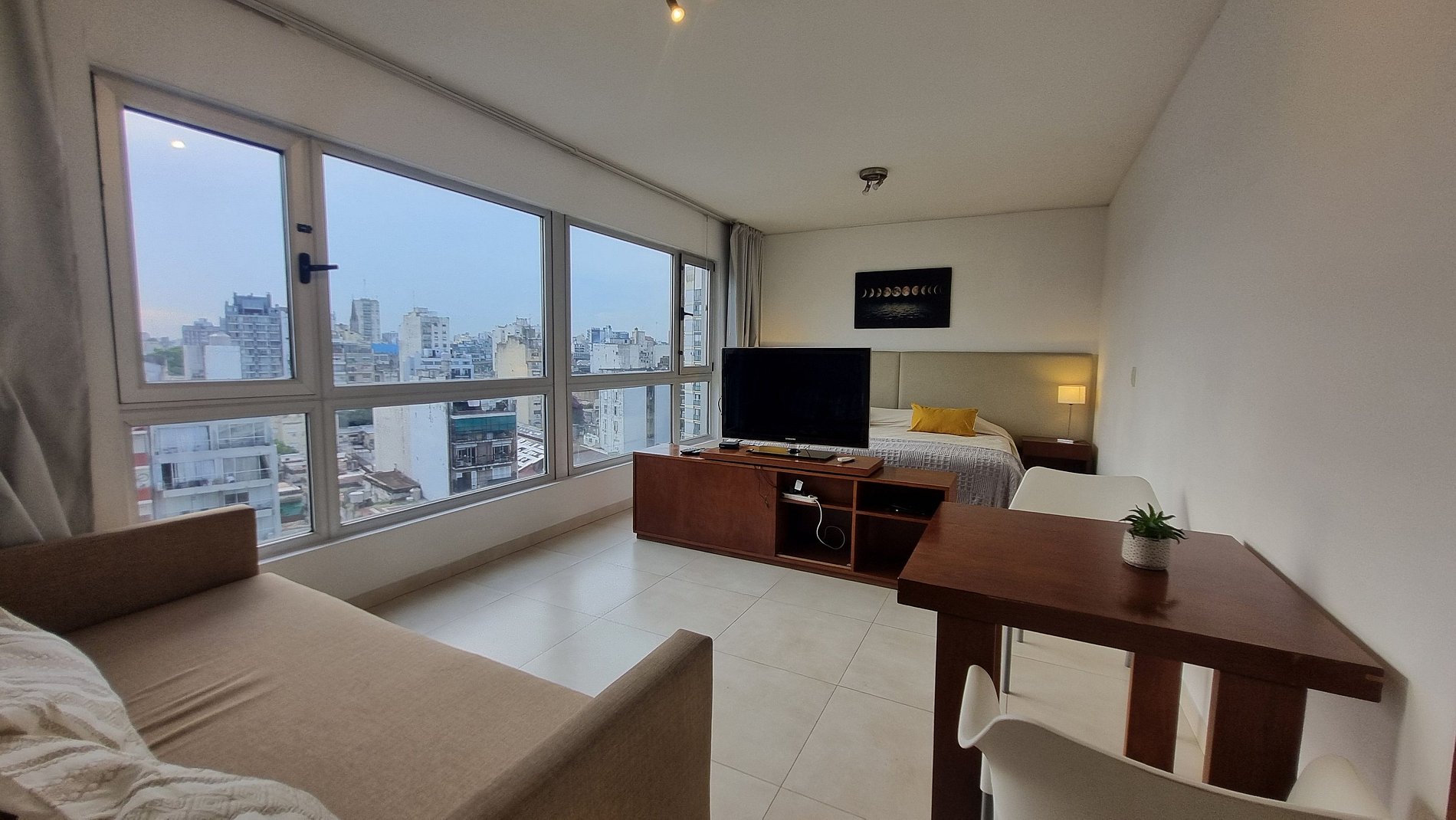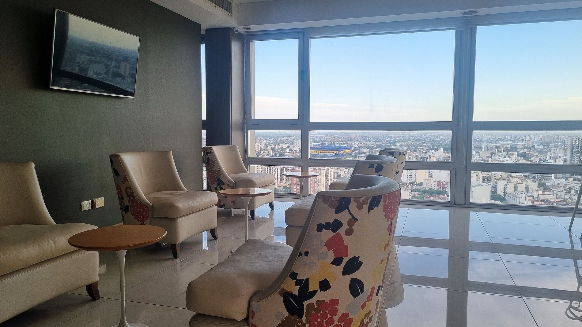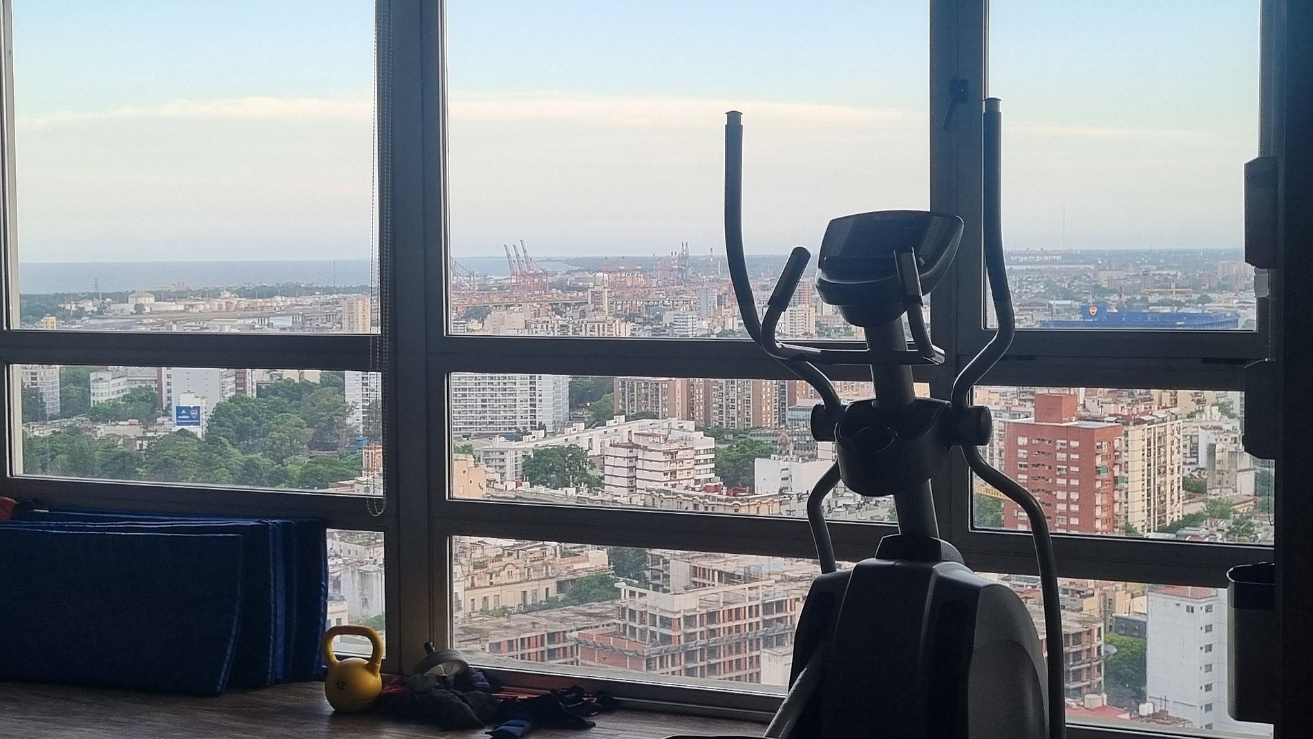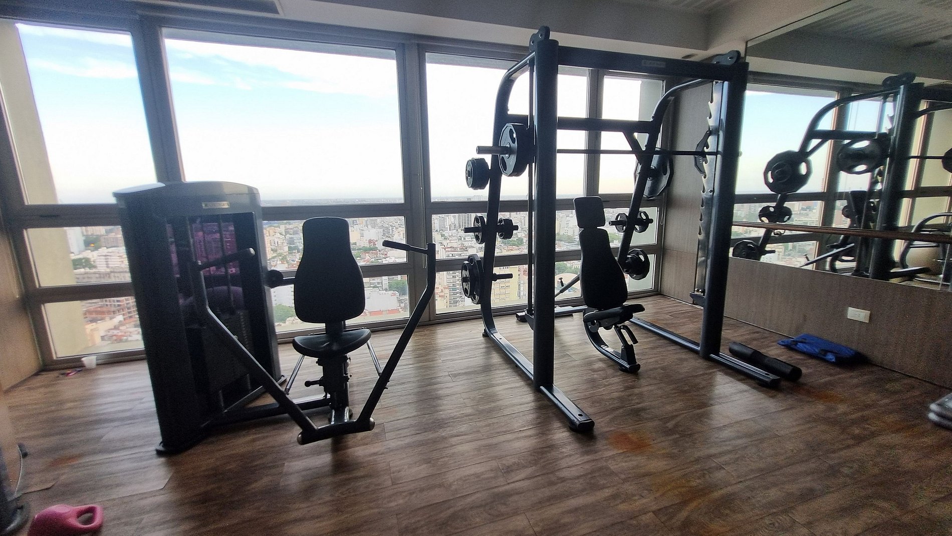 Vas a alojarte en un departamento pensado para el descanso y el disfrute. La habitación ofrece una vista abierta a la ciudad que acompaña tanto el día como la noche, creando un ambiente relajante. Los espacios comunes del complejo elevan la experiencia: nadar, entrenar, relajarte en el sauna o disfrutar del sol en el solarium hacen que la estadía se sienta como un verdadero retiro urbano.