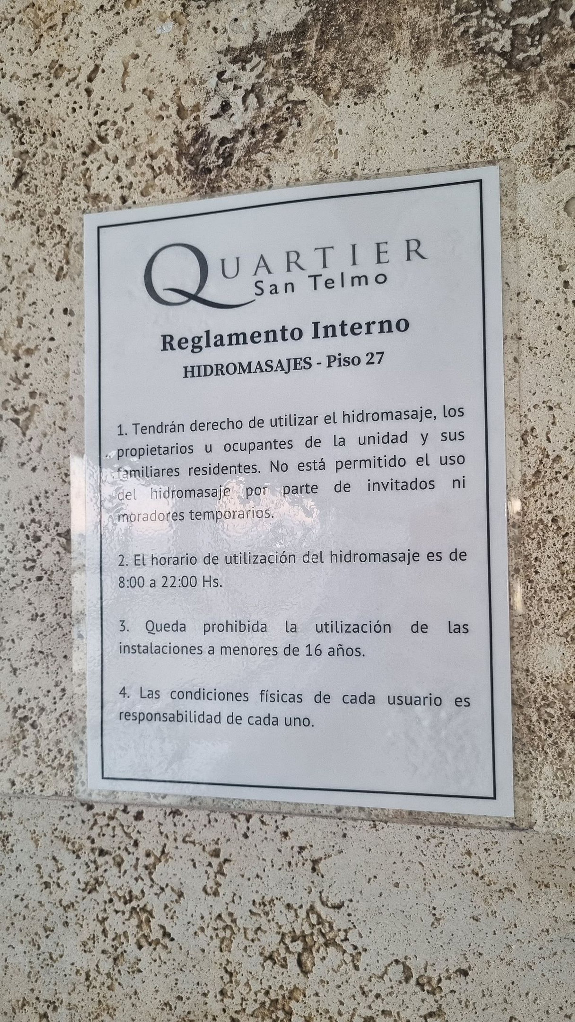 Gimnasio y spa: Uso permitido solo para mayores de 16 años. Prohibido el ingreso de invitados.