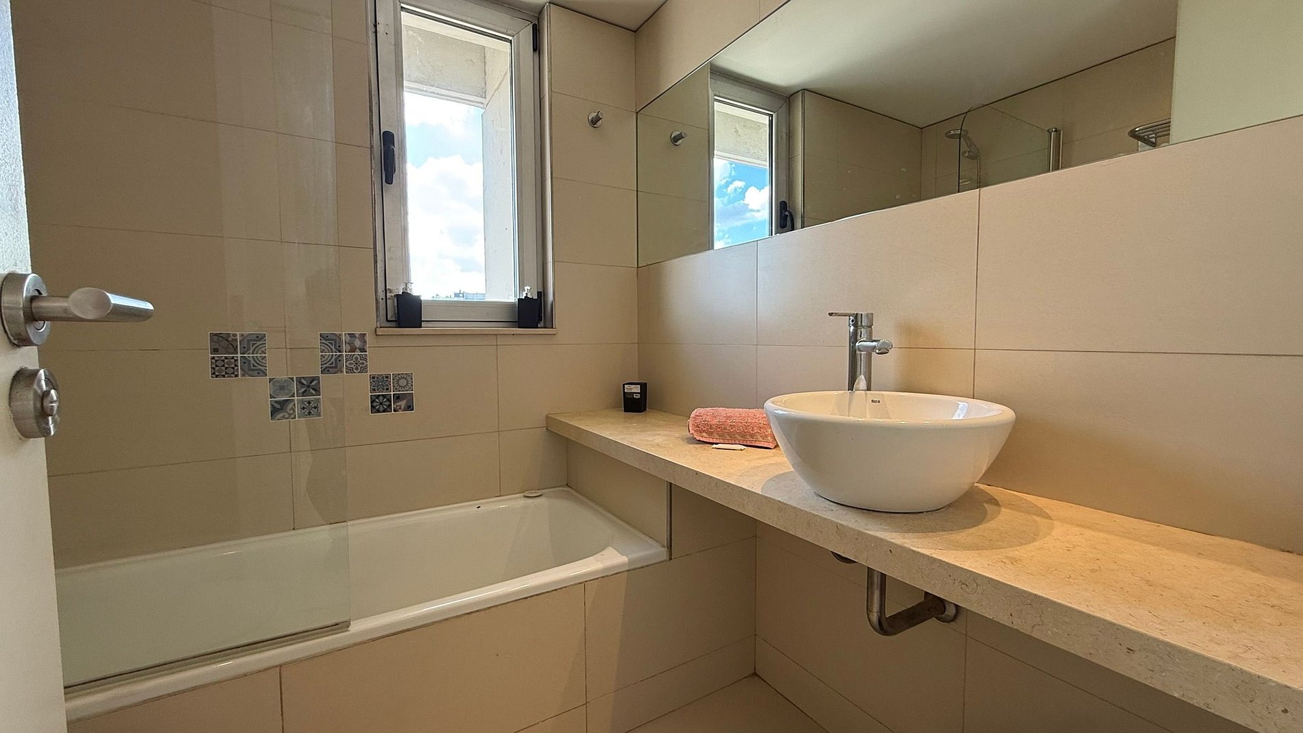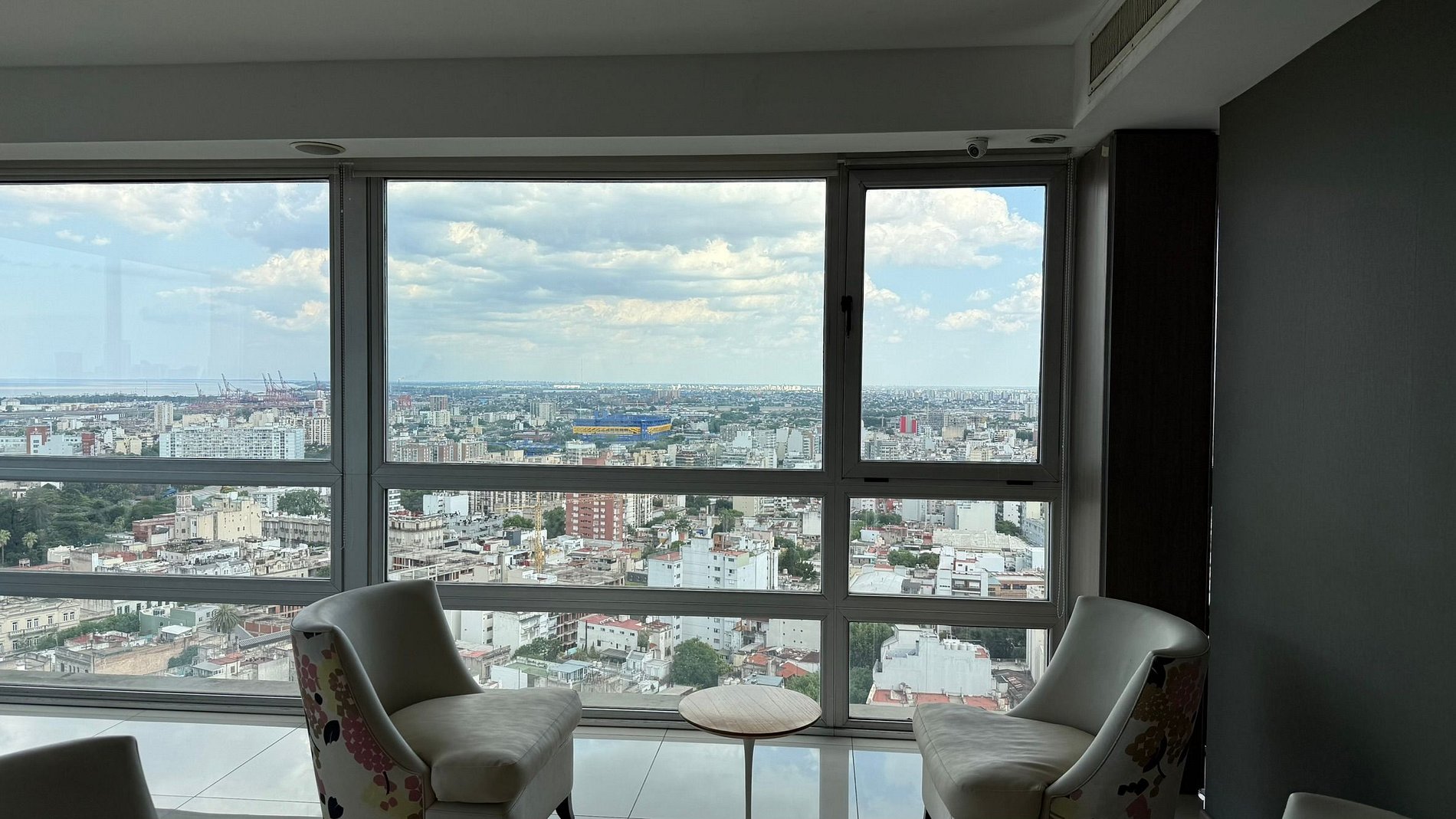 Vas a alojarte en un departamento pensado para el descanso y el disfrute. La habitación ofrece una vista abierta a la ciudad que acompaña tanto el día como la noche, creando un ambiente relajante. Los espacios comunes del complejo elevan la experiencia: nadar, entrenar, relajarte en el sauna o disfrutar del sol en el solarium hacen que la estadía se sienta como un verdadero retiro urbano.