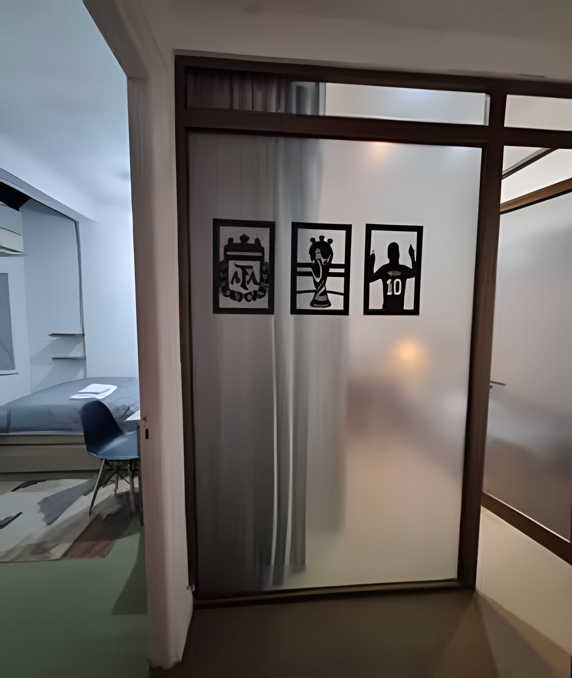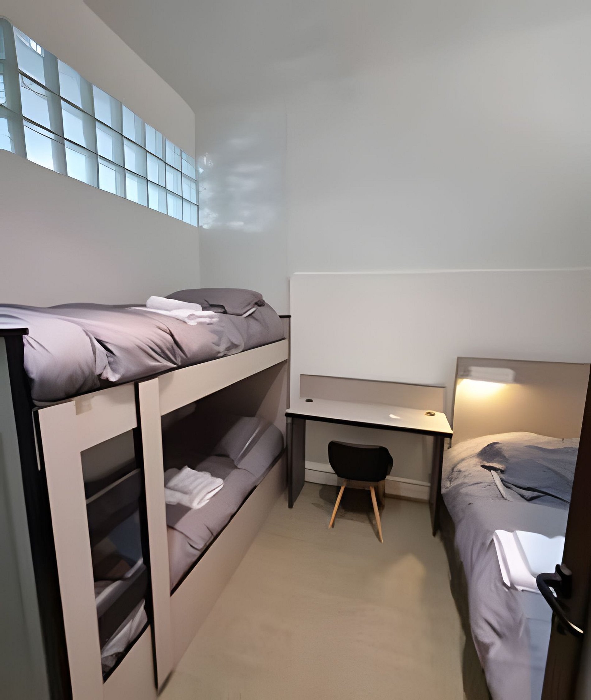- Dormitorio 4: Tres camas individuales, placard y escritorio, perfecto para grupos grandes o familias numerosas. Todas las camas son nuevas, al igual que las sábanas, garantizando una estadía cómoda y fresca