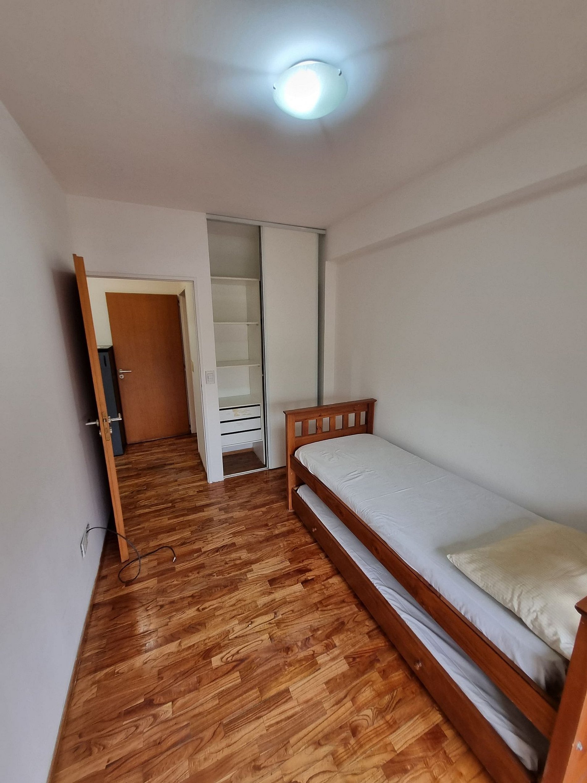 Cuenta con dos habitaciones, aire acondicionado, baño completo y una cocina separada de gran tamaño, perfecta para quienes disfrutan cocinar o necesitan espacio de guardado. El balcón aporta luminosidad y un respiro verde.