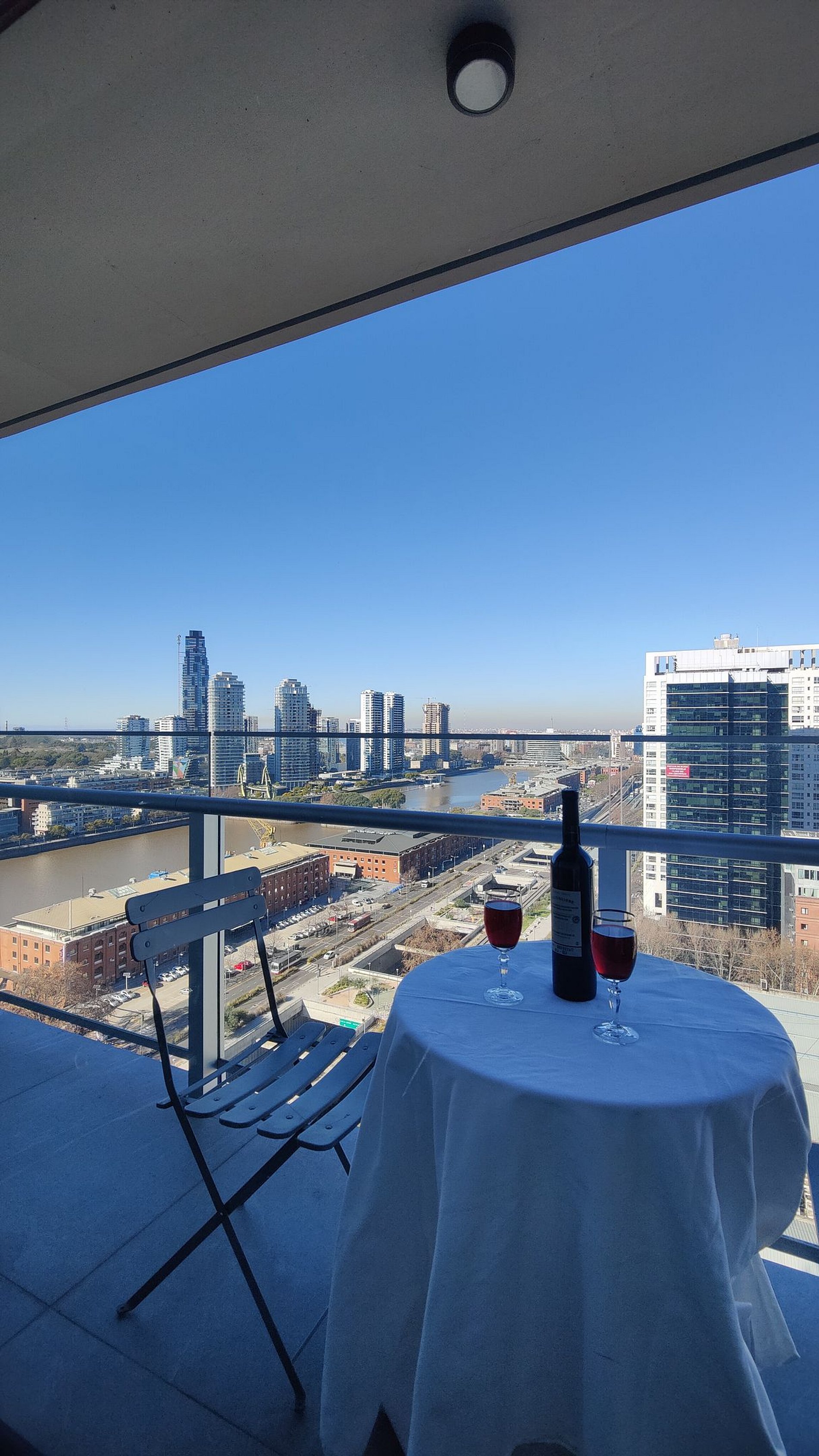 El departamento está totalmente equipado para alojar cómodamente hasta 4 personas, con mobiliario de calidad y una vista imponente a la zona de Puerto Madero desde un piso alto.