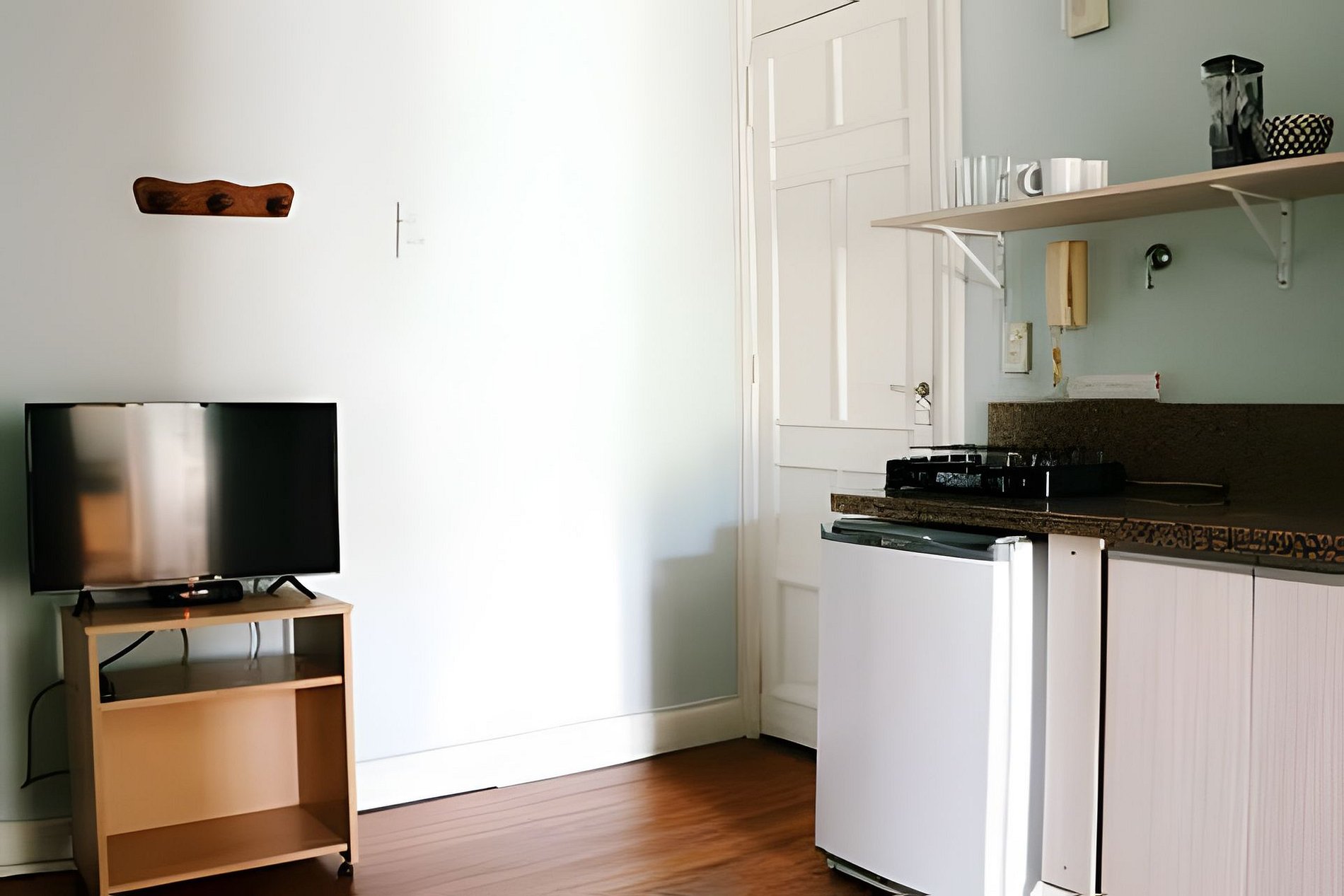 Apartamento de estilo clásico, techos altos y espacios amplios. Al frente y con balcón, muy luminoso. Ubicado sobre la avenida jujuy y a pasos de la avenida Pueyrredón y la Avenida Rivadavia, es un apartamento que tiene excelente conexión con todos los medios de transporte. Cuenta con aire acondicionado, calefacción a gas, cama doble y cama individual. Por seguridad de los huéspedes cuenta con cámaras de seguridad en el pasillo de entrada al edificio y los departamentos (espacios comunes).