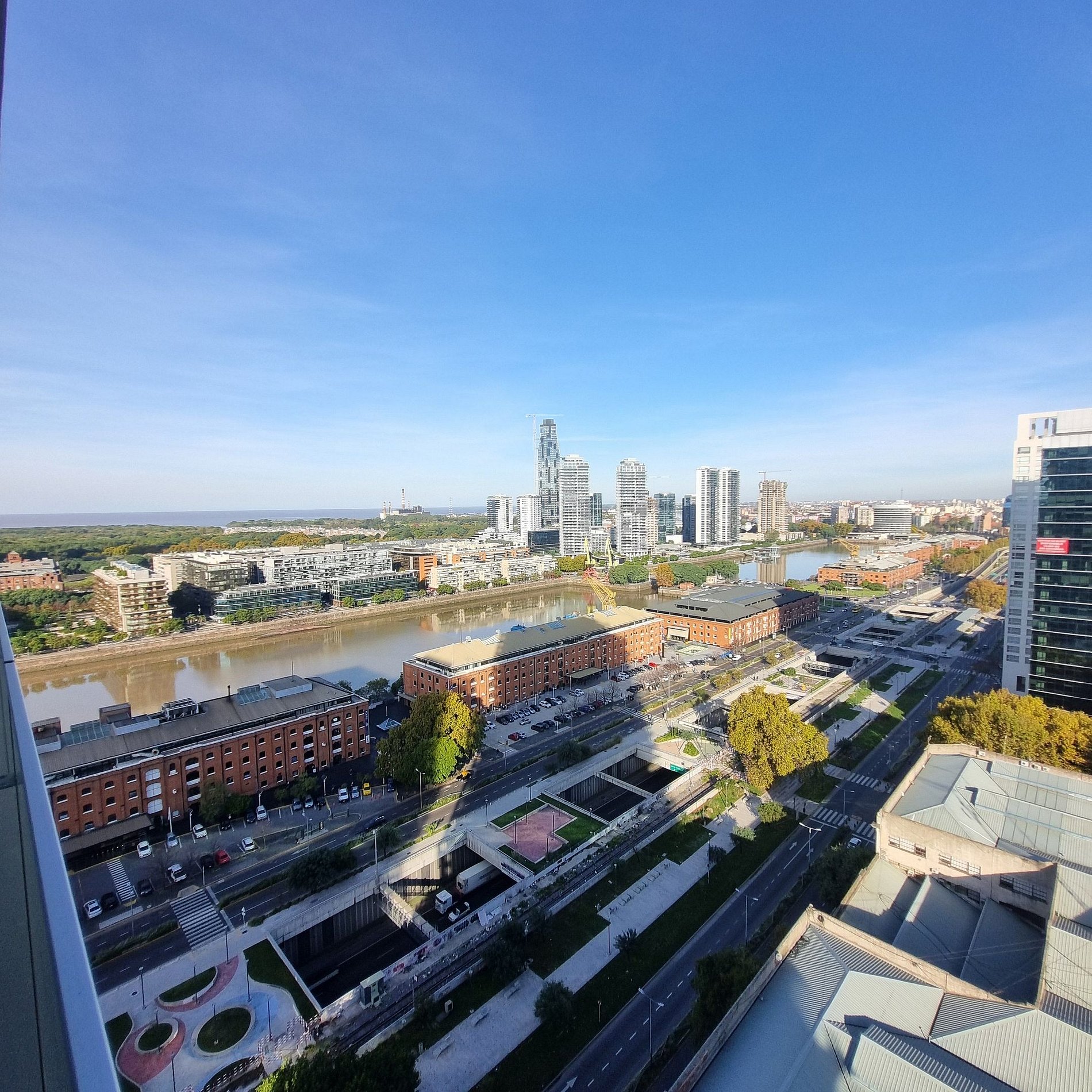 El departamento está totalmente equipado para alojar cómodamente hasta 4 personas, con mobiliario de calidad y una vista imponente a la zona de Puerto Madero desde un piso alto.