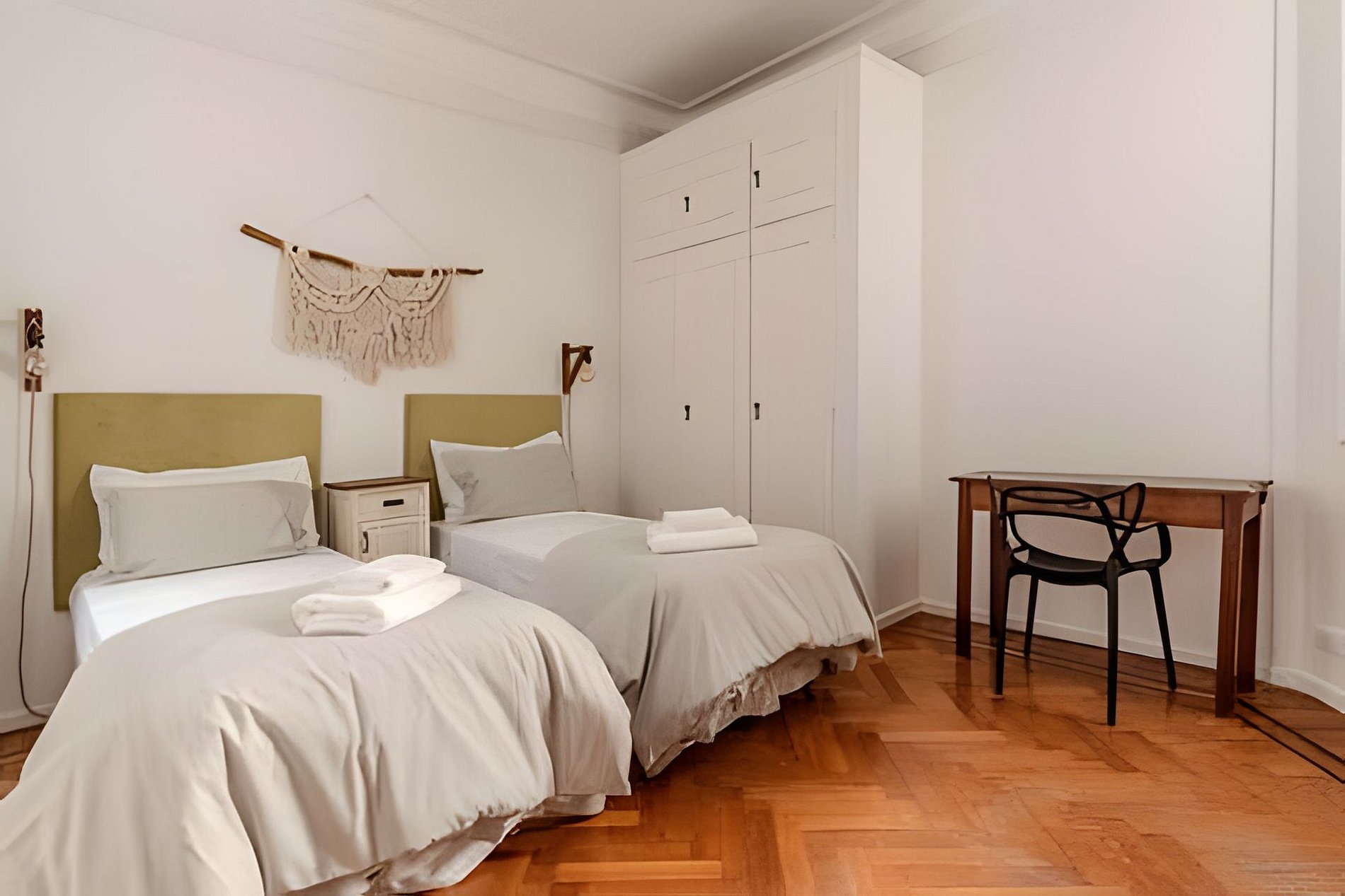 Apartamento de estilo clásico, techos altos y espacios amplios. Al frente y con balcón, muy luminoso. Ubicado sobre la avenida Jujuy y a pasos de la avenida Pueyrredón y la Avenida Rivadavia, es un apartamento que tiene excelente conexión con todos los medios de transporte. Cuenta con aire acondicionado, calefacción a gas, una cama queen y dos camas twins. Ideal para familias. Por seguridad de los huéspedes cuenta con cámaras de seguridad en el pasillo de entrada al edificio y los departamentos (espacios comunes).