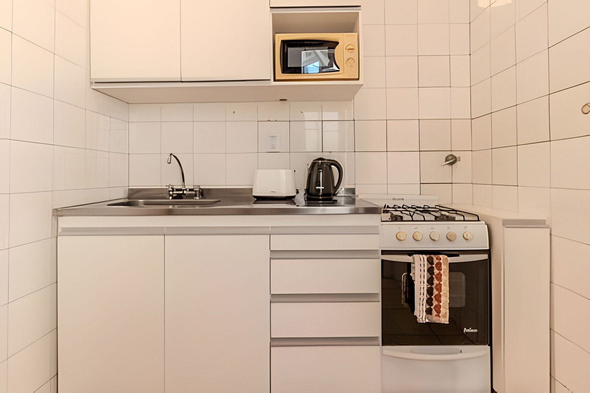 Apartamento de estilo clásico, techos altos y espacios amplios. Al frente y con balcón, muy luminoso. Ubicado sobre la avenida Jujuy y a pasos de la avenida Pueyrredón y la Avenida Rivadavia, es un apartamento que tiene excelente conexión con todos los medios de transporte. Cuenta con aire acondicionado, calefacción a gas, una cama queen y dos camas twins. Ideal para familias.